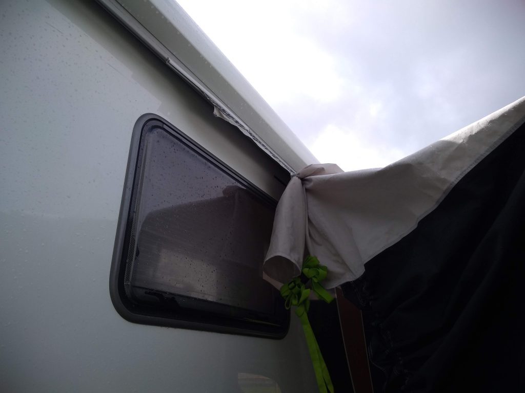 Our awning ripped on the day the tour came through the village, it was wet and windy!